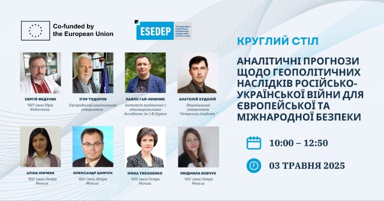 Запрошуємо взяти участь у роботі круглого столу “Аналітичні прогнози щодо геополітичних наслідків російсько-української війни для європейської та міжнародної безпеки”, який проводиться в рамках навчального курсу «Спільна політика безпеки та оборони Європейського Союзу: виклики, пов’язані з війною в Україні» (ESEDEP). Коли? … Читати далі Запрошуємо взяти участь у роботі круглого столу “Аналітичні прогнози щодо геополітичних наслідків російсько-української війни для європейської та міжнародної безпеки”