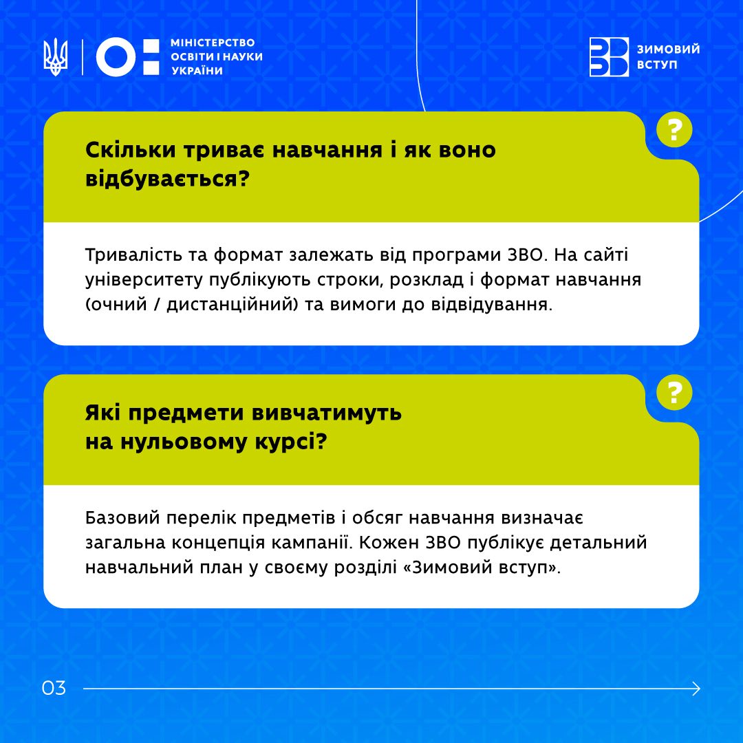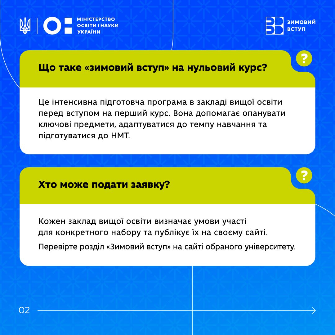 Міністерство освіти і науки України підготувало інфографіку з відповідями на найпоширеніші запитання про «Зимовий вступ» на нульовий курс. У ній зібрано роз’яснення про те, як вступити до університету взимку, що для цього потрібно та що це означає на практиці.