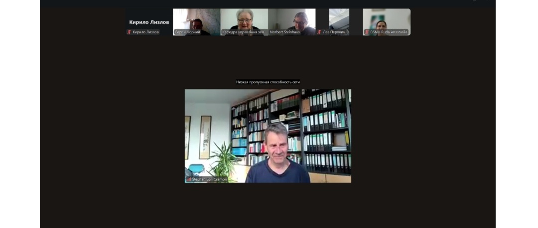 13 листопада 2025 року відбулася робоча онлайн-зустріч представників кафедри управління земельними ресурсами з німецькими колегами з Університету міста Фехта (професор Штайнхауз) та Університету міста Ґетінґен (професор фон Крамон). Захід був присвячений розвитку академічної мобільності та можливостям спільних наукових досліджень.